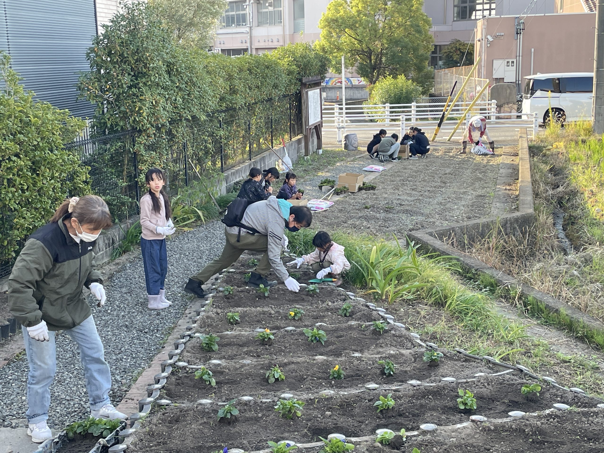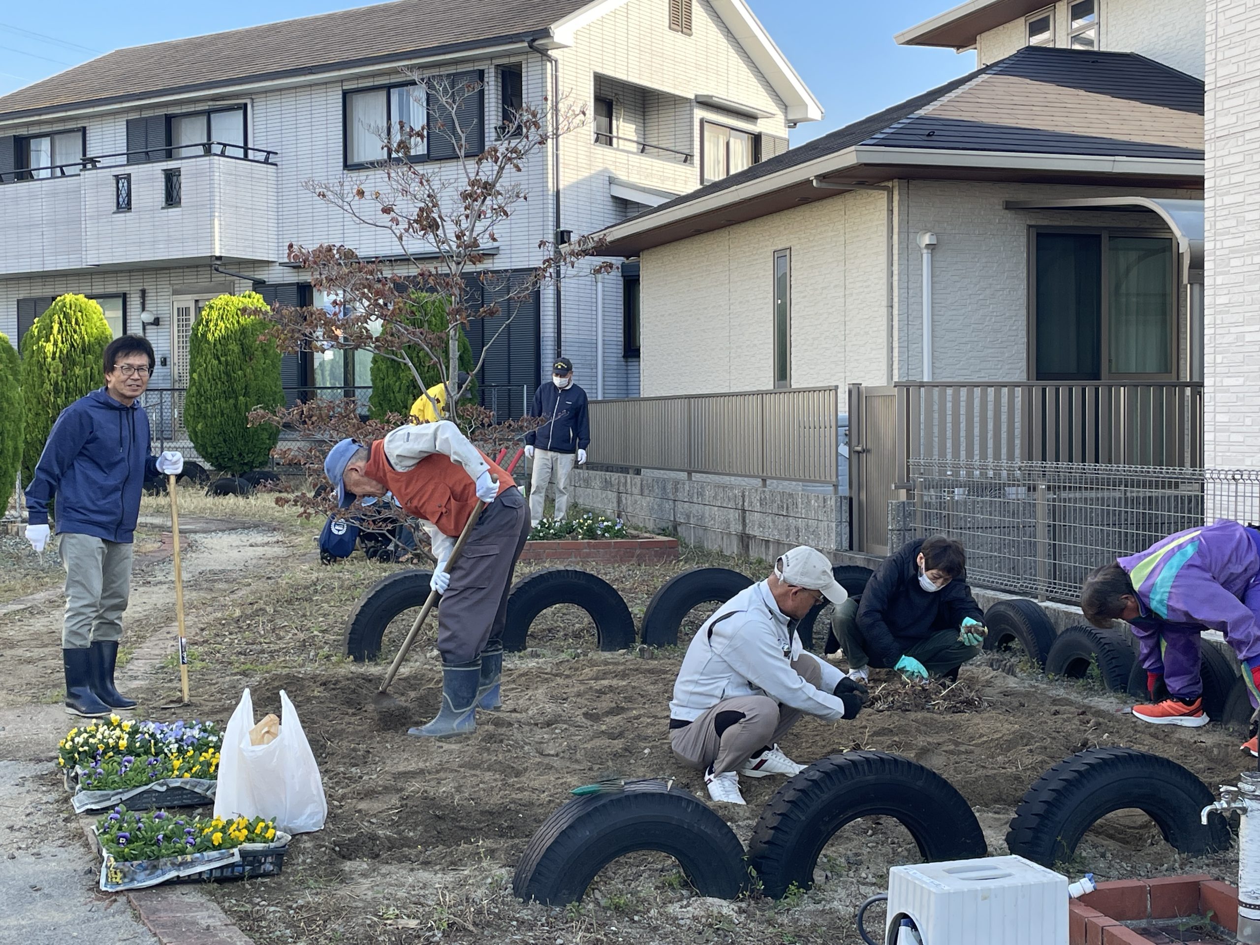 花壇には季節の花が咲き、地域の方の憩いの場として親しまれています(令和7年度より翼まちづくり協議会が管理)