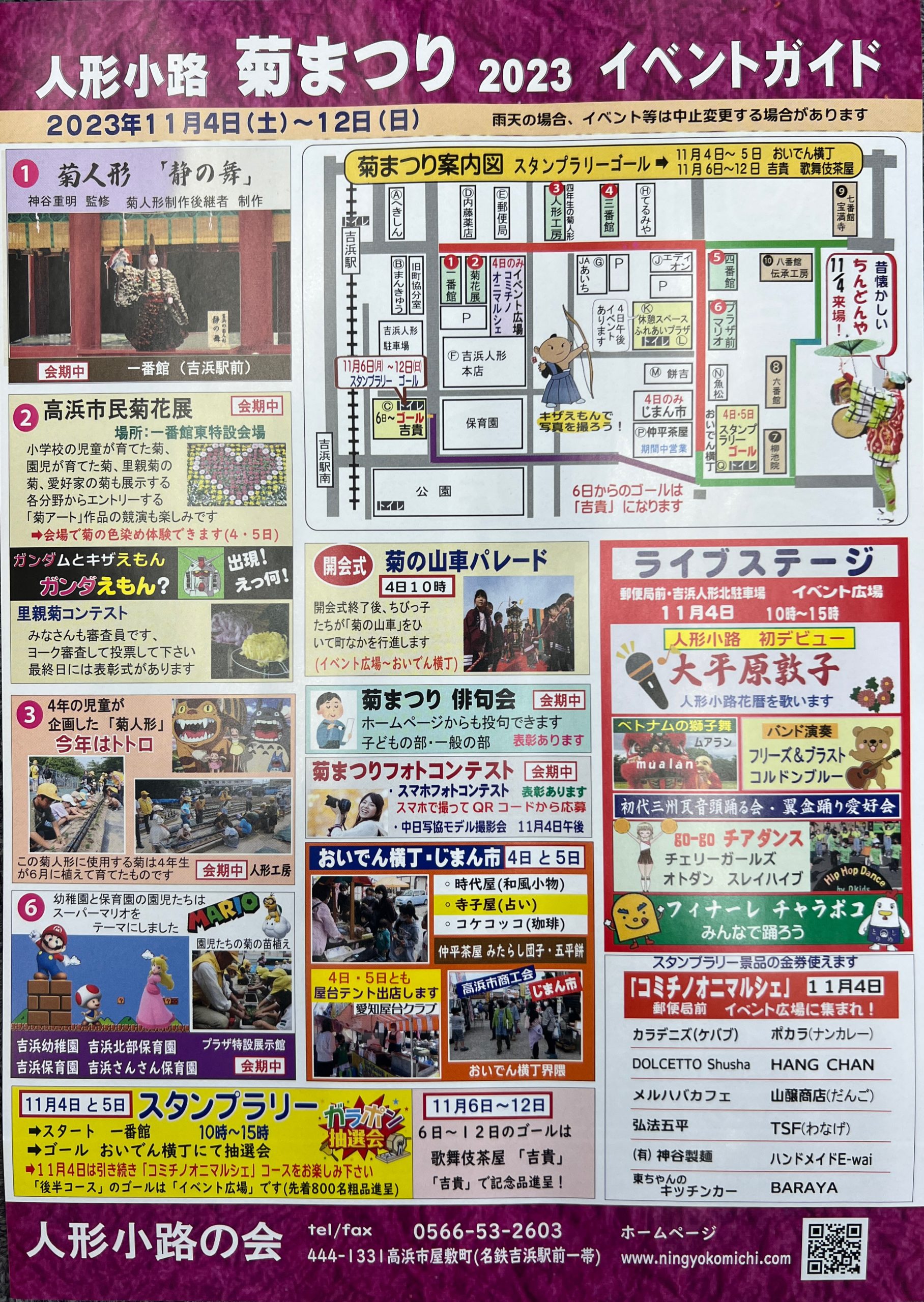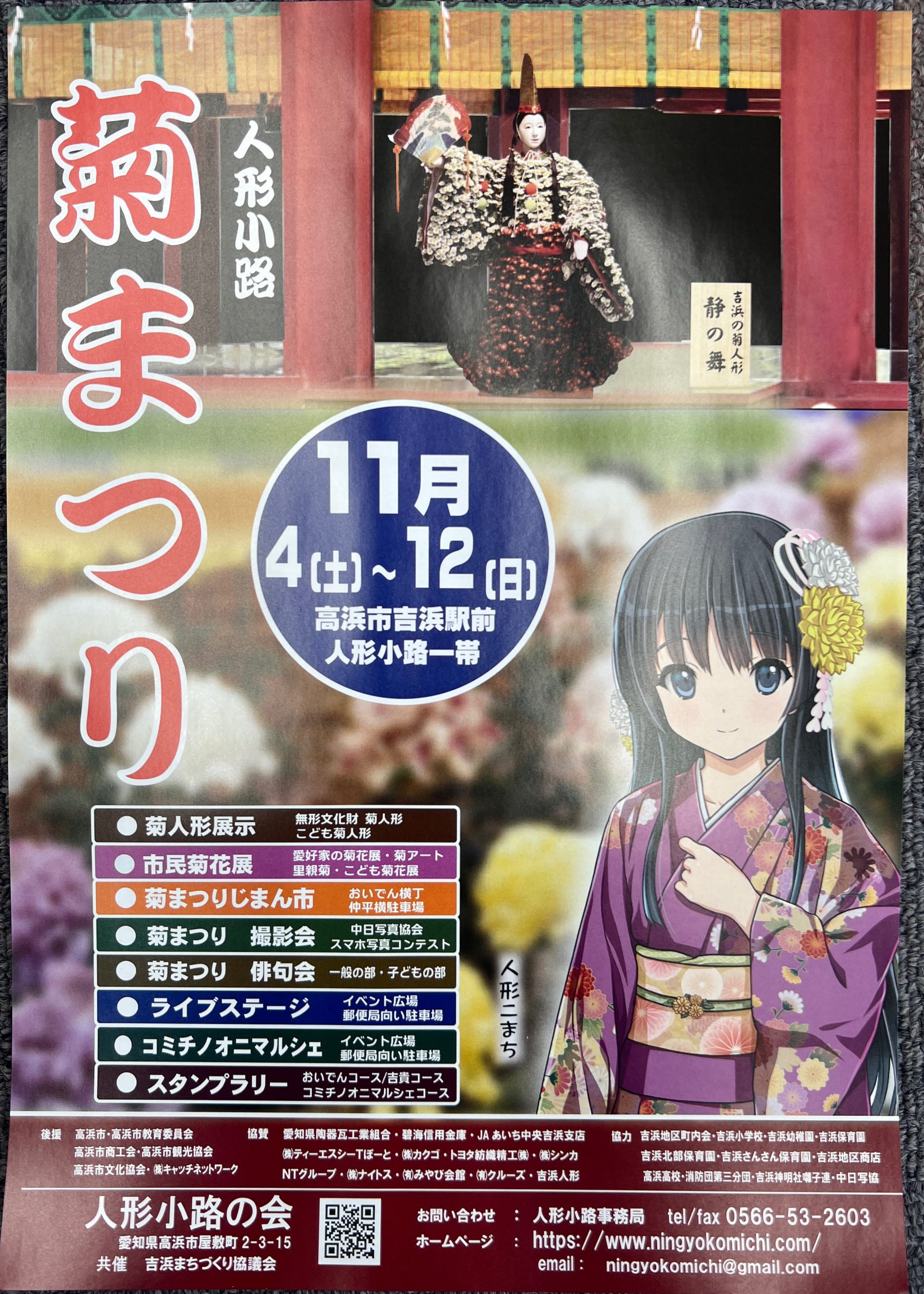 高浜市無形文化財「吉浜の菊人形」の展示をはじめ、伝統継承と町おこしをかねたイベント、市民菊花展では公募により菊の花を育てた自慢のキクを展示する里親菊コンテスト、愛好家の菊花展、地元の小学4年生の児童が鉢植えから開花まで世話をしてきた菊の鉢、地域の幼稚園・保育園からはプランターの