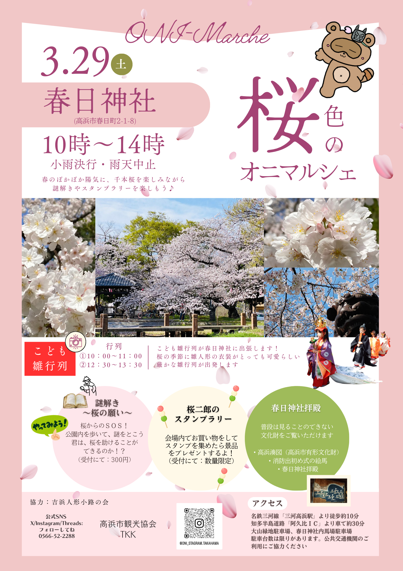 桜の季節に合わせて、特別に春日神社で「出張こども雛行列」を開催します。