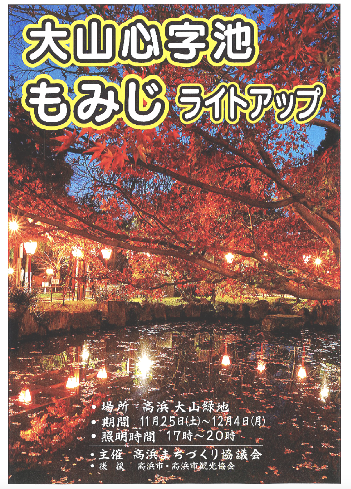 大山緑地の心字池で紅葉のライトアップを行います。