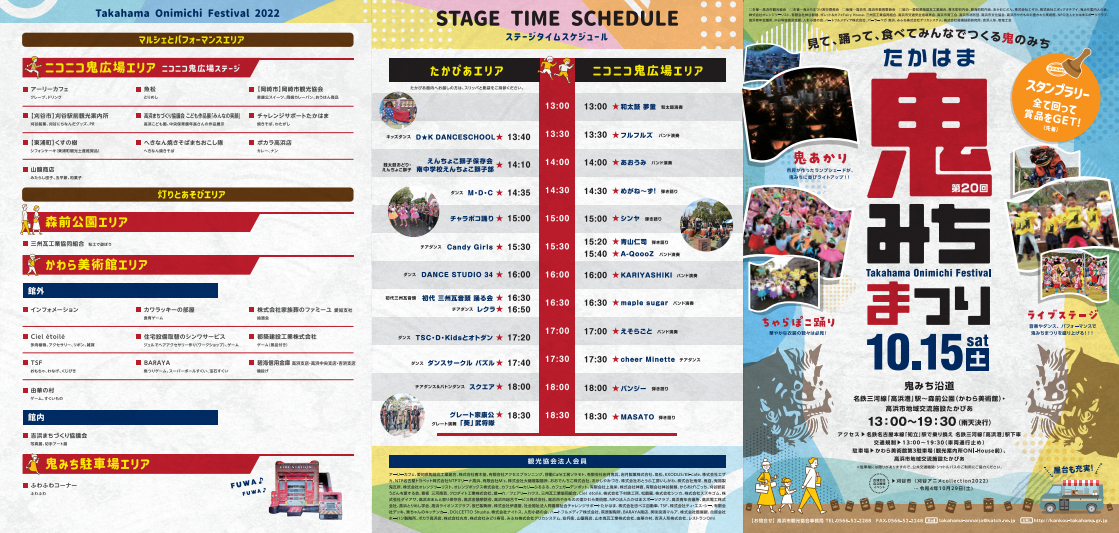 今回新たに会場となった「たかぴあステージ」では、 高浜市のオリジナルのCHARAPOCO踊り(祭礼のお囃子が奏でるチャラボコをアレンジした曲)やキッズダンス♪ニコニコ鬼広場ステージでは、バンド演奏や弾き語りなど、どちらのステージも市内外のみなさんによる楽しいパフォーマンスで盛り上がります!!
